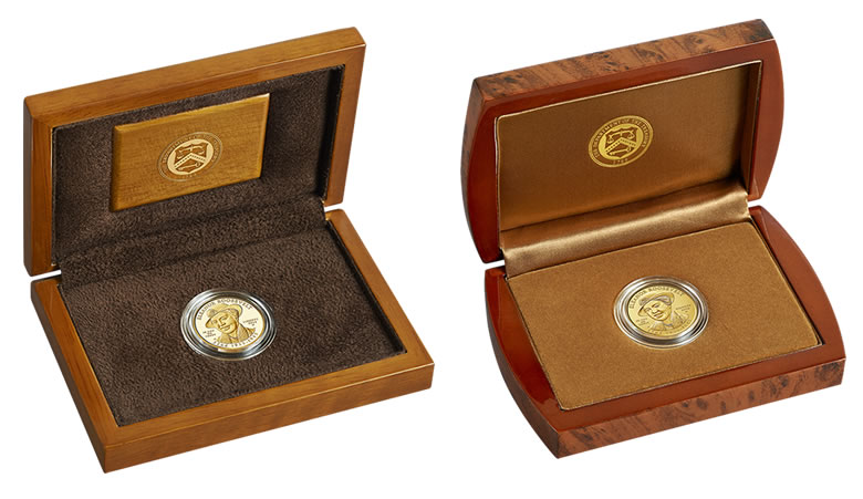 First Spouse Gold Coins ship in highly polished, dome-chested, lacquered hardwood presentation cases. A certificate of authenticity is also included.
