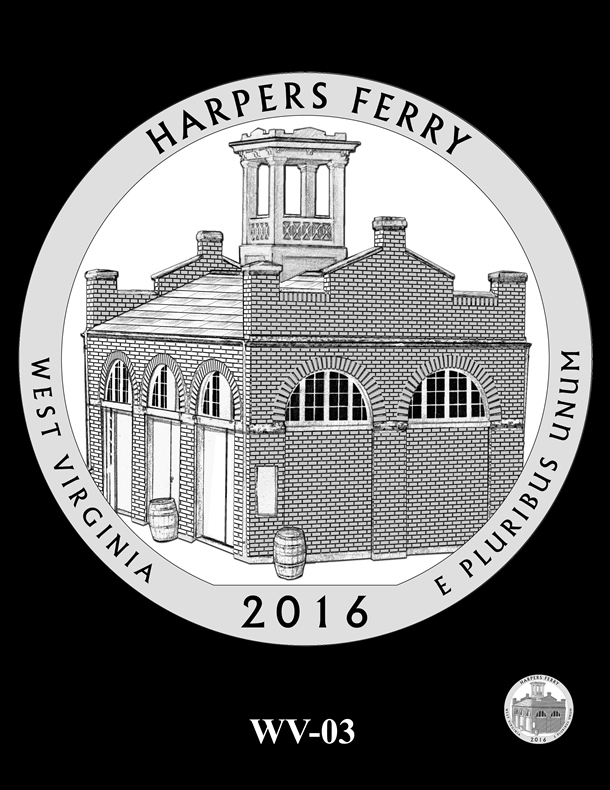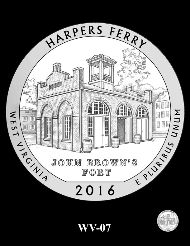 Design 7 (WV-07) features John Brown’s Fort, the site of John Brown’s last stand during his raid on the Armory.