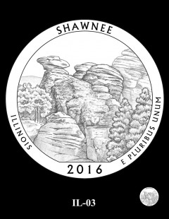 Design 3 (IL-03) depicts Camel Rock, the most popular and iconic rock formation at Shawnee National Forest.