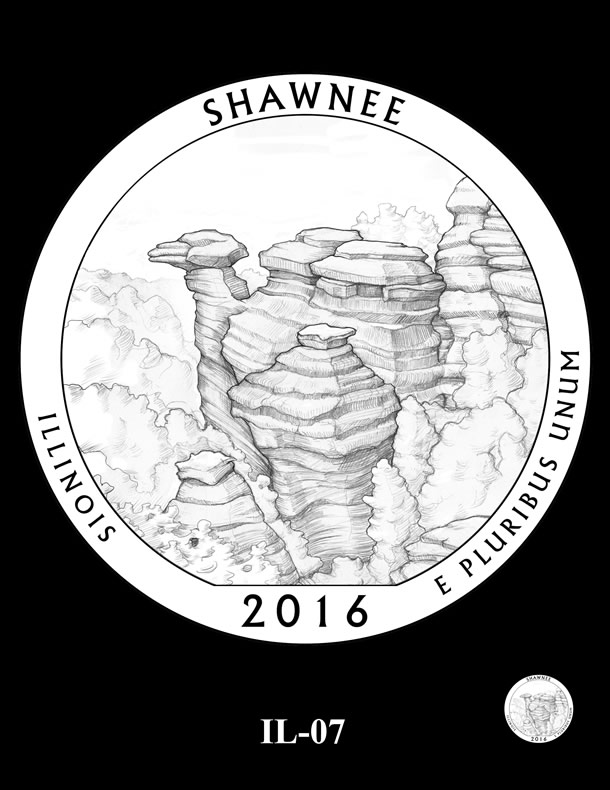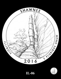 Design 6 (IL-06) depicts Devil’s Smokestack, one of the rock features at Shawnee National Forest.