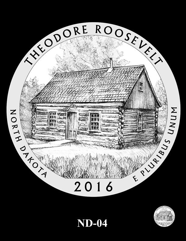 Design 4 (ND-04) depicts Theodore Roosevelt’s Maltese Cross Cabin.