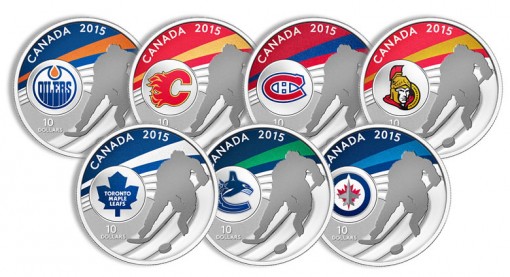 Celebrating the winter sport of the nation, the Royal Canadian Mint has unveiled seven new 99.99% pure silver collectible coins with reverse designs emblematic of the seven teams of the Canadian National Hockey League®.