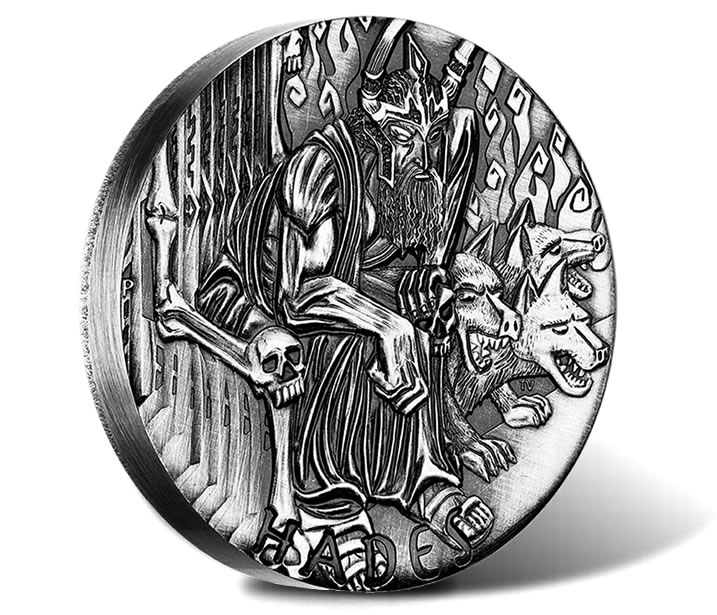 As discussed in more detail here, the third and final release in an extremely popular program is the 2014 Hades 2 oz Silver High Relief Coin from the Mint’s Gods of Olympus series. Offered on the reverse of the antique finish coin is a design portraying the mythical character of Hades.