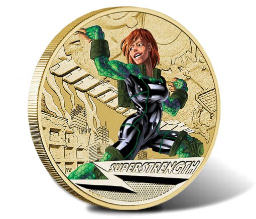 Super Strength $1 coins are housed in an illustrated presentation card and feature an unlimited mintage. Pricing per coin is AUS $13.59, or US $ 11.86.