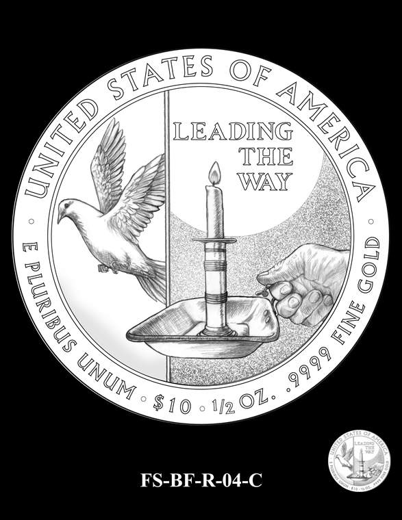 FS-BF-R-04 – This design features a hand carrying a candle with a flying dove in the background. The inscription reads "Leading the Way." Mrs. Ford shed light on subjects not previously openly discussed, such as addiction and breast cancer. By doing so, she gave hope and freedom to many who were suffering in silence.