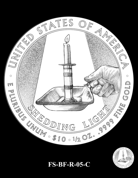 FS-BF-R-05 – This design features a hand holding a candle. The inscription reads "Shedding Light." Mrs. Ford led the way to a more open and honest discussion about substance abuse and breast cancer.