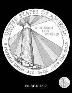 Seven design candidates were presented for the reverse. They were sequentially numbered 1-8 with #2 not presented. Recommended Reverse: The CCAC liked design #8 and the CFA preferred design #6 with the replacement of the text with "Shedding Light" as shown in design #5.