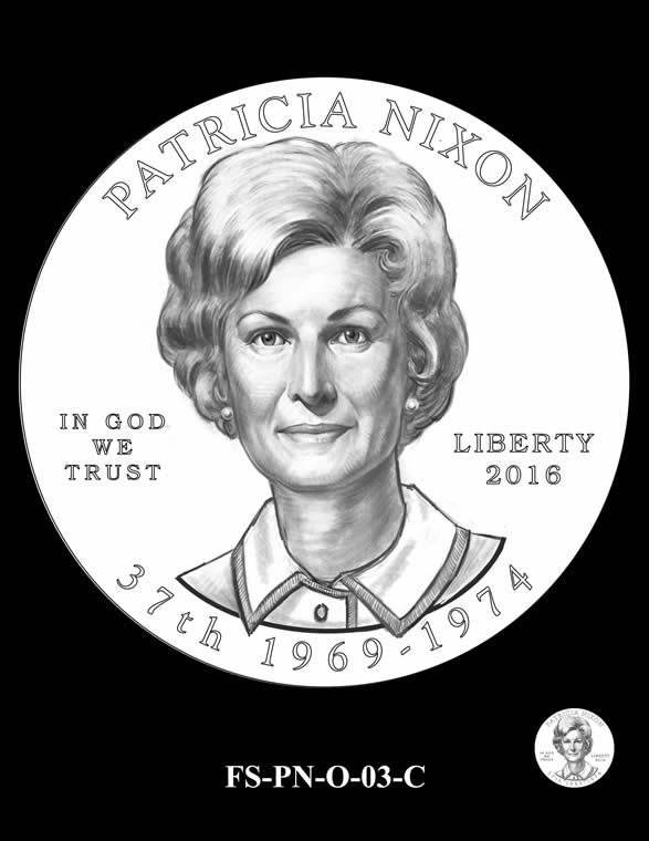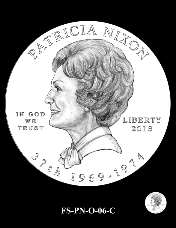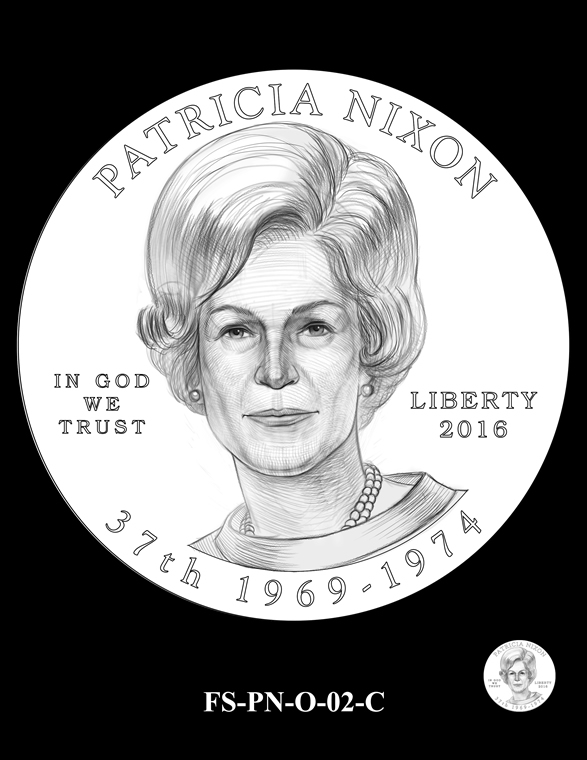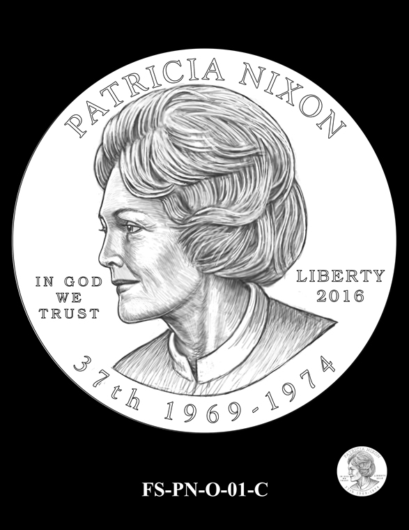 Seven different images for the obverse of the Patricia Nixon coins were submitted for review. Recommended Obverse: The CFA and the CCAC liked design #5.