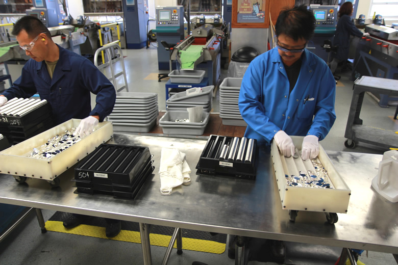 In going the extra mile and unique to the Mint, planchets are then manually washed, dried, buffed and re-racked. They’re now ready for coining.