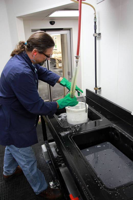 In the next photo and video, we see Die Setter William Tan. The video shows Tan assembling the die tooling for the obverse of the 2014-S Enhanced Uncirculated Kennedy Half-Dollar.