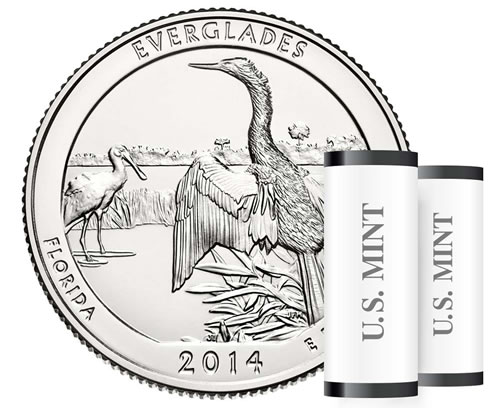 On Monday it will begin selling rolls and bags of Everglades National Park Quarters at prices ranging from $18.95 to $46.95, and then on Thursday it will release the 2014-P Everglades National Park Five Ounce Silver Uncirculated Coin for $154.95.