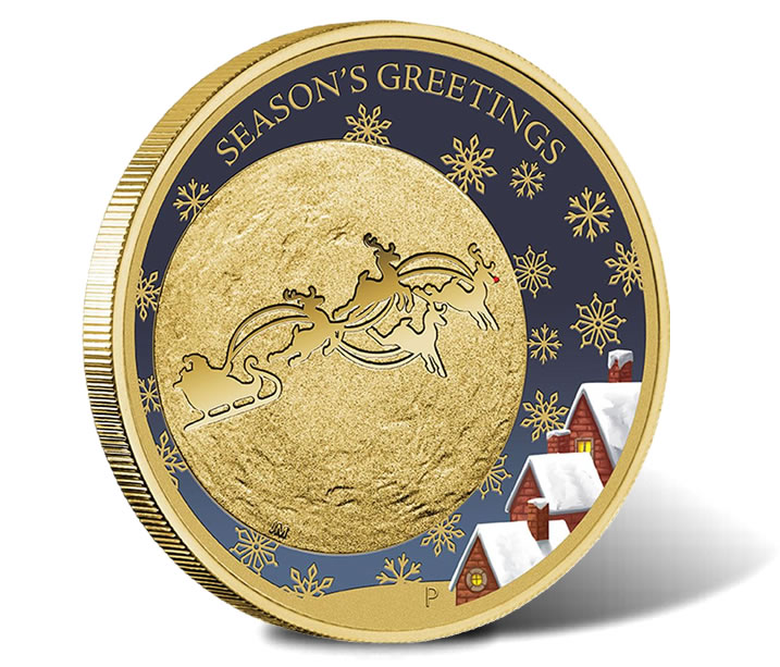 In time for holiday gift-giving, the Perth Mint has issued the 2014 Christmas Stamp & Coin Cover. As part of the release, a holiday-themed coin celebrates the story of Santa Claus and his reindeer.
