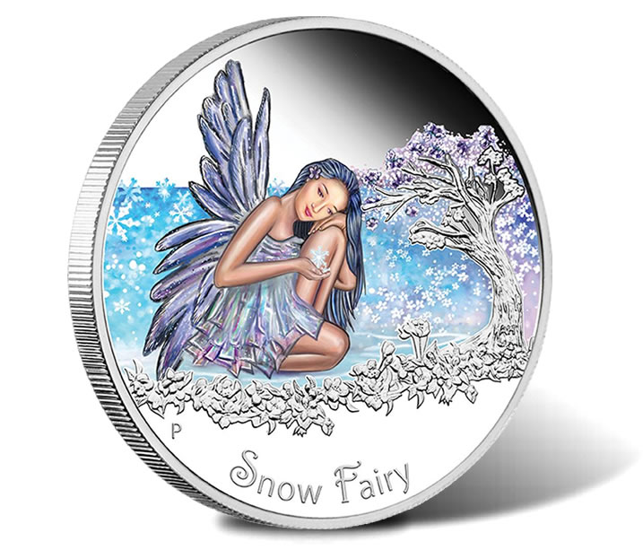 Each coin is attached to an illustrated presentation card which opens to display a pop-up snow fairy. Mintage is capped at 5,000 with pricing listed at AUS $57.73, or US $50.45.