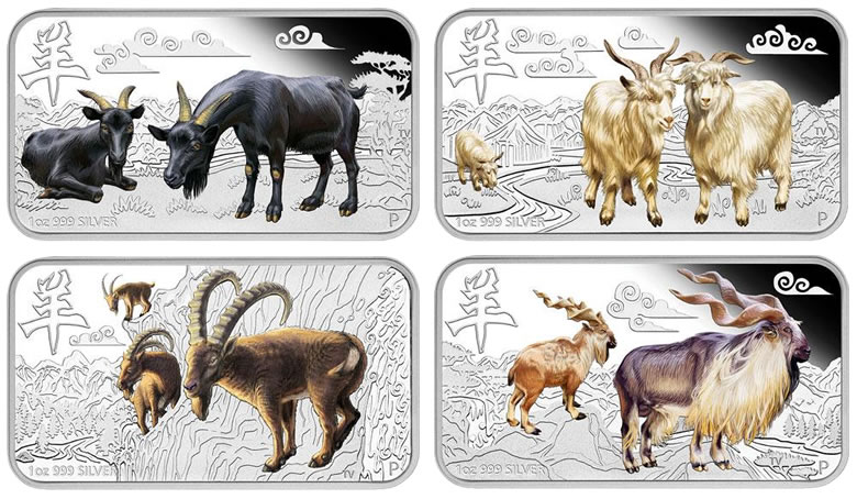 Year of the Goat Silver Rectangle Four-Coin Set