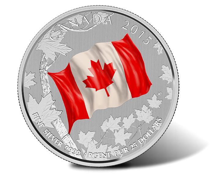 $25 for $25 Silver coin, The Canadian flag, IN COLOUR!