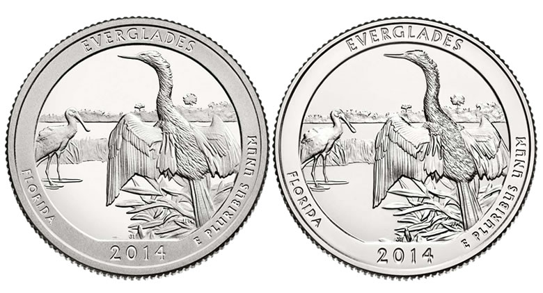 Coins of this set honor the national park in Florida. Everglades quarters entered circulation on Nov. 3, 2014. An official ceremonial release is scheduled for Dec. 4, 2014.