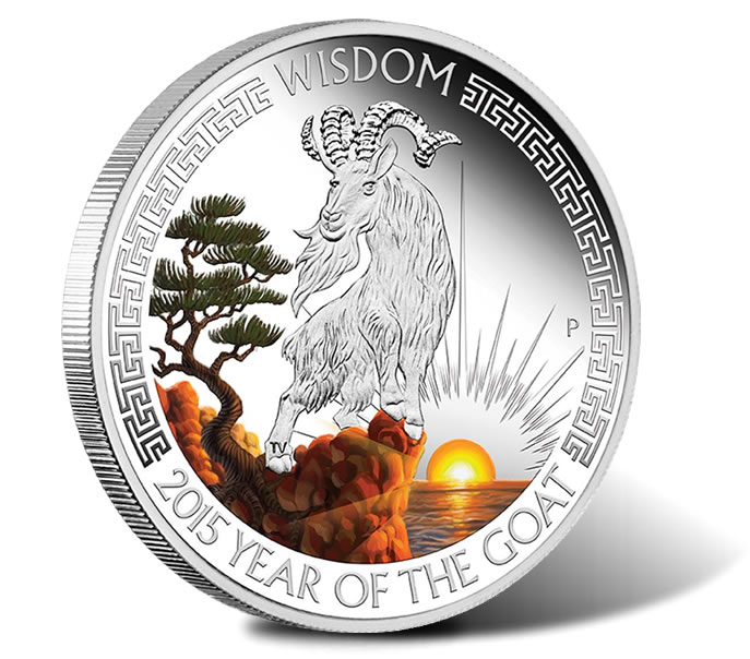 A 2015 Year of the Goat Wealth and Wisdom Silver Proof Two-Coin Set is issued by the Perth Mint as part of the companion Lunar Good Fortune Series.