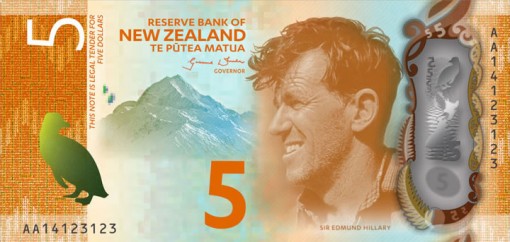 The new banknotes will still showcase the same denominations, sizes, themes and New Zealanders to include Sir Edmund Hillary, Kate Sheppard, Queen Elizabeth II, Sir Apirana Ngata and Lord Rutherford. They will also still be produced from flexible plastic. What will change is that each note will feature a brighter, more modern look and have marked increases in color contrast from other notes. Denominations will also appear in larger print.