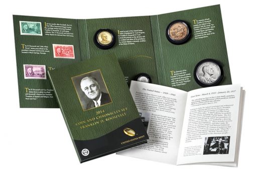 Coin and stamp collectors can get a closer look now at the 2014 Franklin D. Roosevelt Coin and Chronicles Set before it launches next week on Dec. 22, 2014. The U.S. Mint published new images of an opened set along with its booklet, coins and medals.