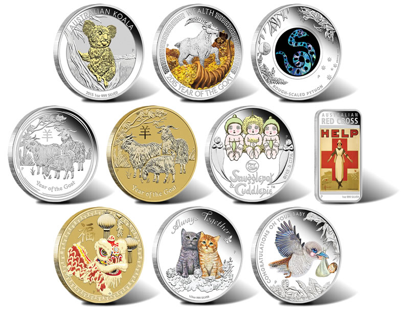 Leading the charge are new Lunar Year of the Goat Coins with two offered in silver and one appearing as part of a stamp and coin cover release. Also sure to be of interest, the 2015 Australian Koala Silver Gilded Edition makes its debut appearance.
