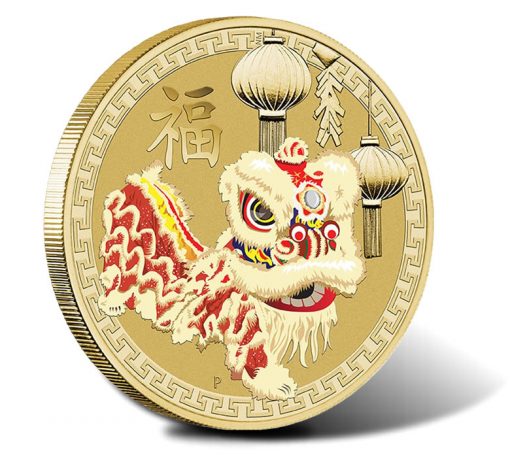 Tradition is important to the Chinese culture and that includes the lion dance which dates back to the Han Dynasty (205 BCE to 220 CE). This festive dance is brought to life in color on this aluminum bronze coin.
