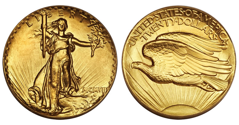 Nearly as spectacular was the sale of a 1907 $20 Ultra High Relief gold piece, graded PR68 by both NGC and PCGS Secure. This rarity was offered for the first time ever at auction and quickly realized $2.115 million.