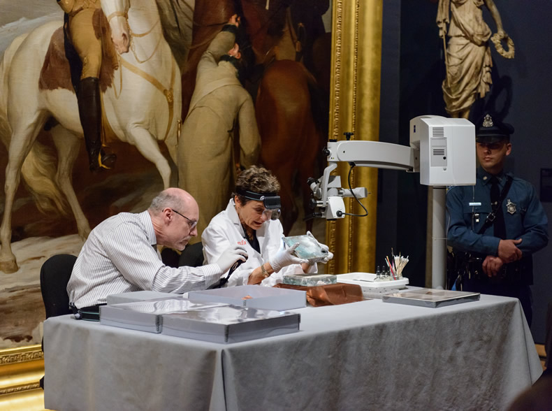 Pamela Hatchfield, the museum’s conservator who freed the capsule from the cornerstone last month, and Annette Manick, the museum’s head of paper conservations, are overseeing the conservation treatment of the artifacts.