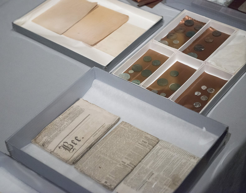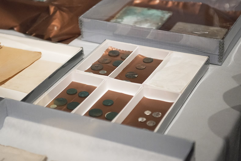 And intriguingly, there is also an account of the artifacts from a document penned in 1855 when the time capsule was last unearthed. Back then, its contents were cleaned, with additional items added and then placed in a brass box. There’s a bit of extra fascination here for coin collectors. As a part of the reburial ceremony for good luck, five 19th-century silver coins were inserted during the setting of the plaster which encased the capsule. Those coins were also recovered on the 11th.