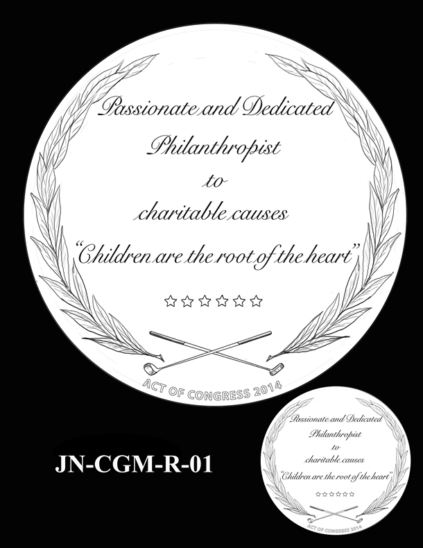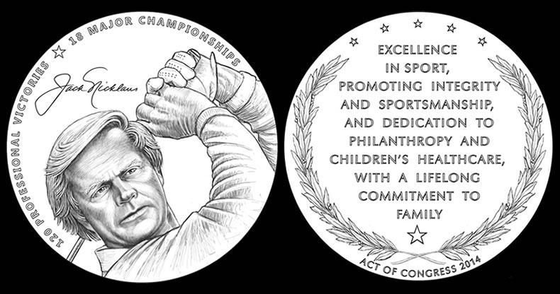 Public Law 113-210 authorizes the medal in recognition of Nicklaus’ service to the nation in promoting excellence, good sportsmanship, and philanthropy. The law also calls for the striking of bronze duplicate medals for sale to the public.