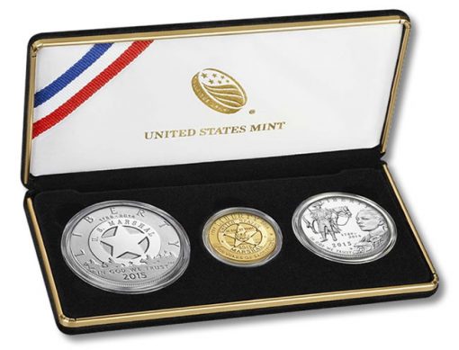 Mintages are the maximum number of coins that may be produced under the law. Commemorative coin laws tend to be very generous with these totals. In reality, the U.S. Mint will only strike enough coins to fulfill demand, and only sell them through to the end of 2015. Also, customer demand will determine the ratio of proof to uncirculated coins minted within the authorized mintage limits. Finally, the three-coin proof set has a U.S. Mint-imposed product limited of 15,000.
