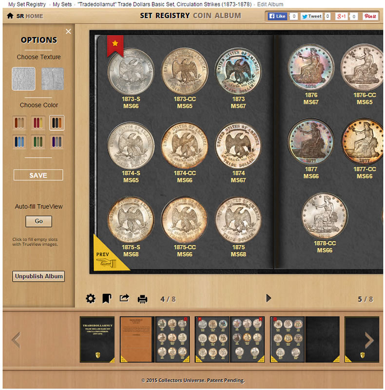 "We’ve developed a way for you to create an elegant coin album which you can enjoy yourself or share with your friends anytime," explained BJ Searls, PCGS Set Registry and Special Projects Director. "You simply login to My Set Registry, visit one of your sets, and build the album with the images you have added to your set."