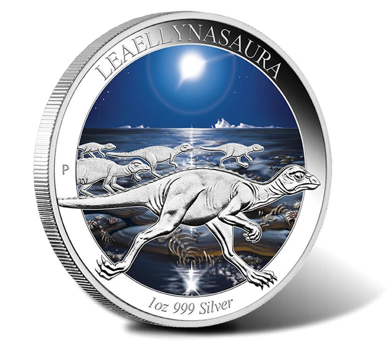 Lastly, there is the one-ounce, 99.9% fine 2015 Leaellynasaura Silver Proof Coin. This piece is the third issues from the Perth Mint’s Australian Age of Dinosaurs series and features a depiction of Leaellynasaura against a starlit prehistoric scene.