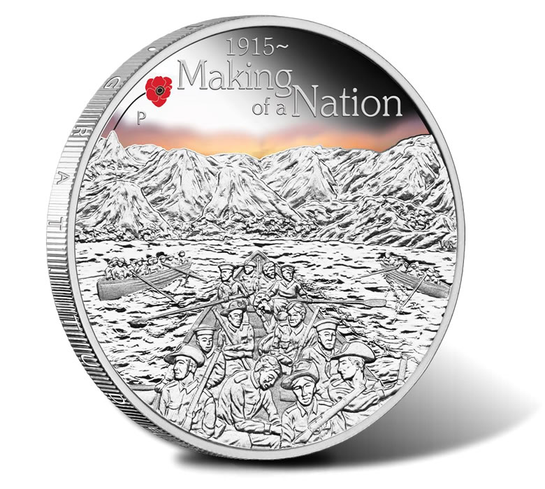 A more affordable ANZAC Spirit 100th Anniversary Coin is available with the release of the one-ounce, 99.9% pure 2015 Making of a Nation Silver Proof Coin. Also struck in association with the Australian War Memorial, this release depicts Australian soldiers in wooden row boats making their way towards the Gallipoli shore.
