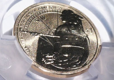A U.S. Mint 2014 Native American $1 Coin with missing edge lettering is positioned to score big in a GreatCollections sale ending Feb 8. Current bidding has the mint error at $6,450.