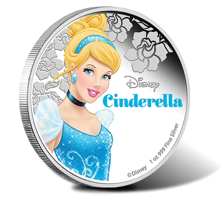 Limited to 10,000 and priced at AUS $97.73 or US $76.36, Disney Princess Cinderella silver coins are struck in one ounce of 99.9% fine silver to a diameter of 40.60 millimeters.