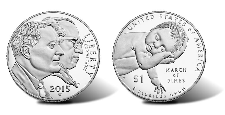 Discussed here earlier this month, this set in one of three products that will celebrate the 75th anniversary of the March of Dimes Foundation. The other two products are individually sold March of Dimes Silver Dollars, one in a proof finish and another in an uncirculated finish. The special 90% silver set will carry one of the silver dollars, the proof version struck at the West Point Mint, plus a silver proof Roosevelt dime from the West Point Mint and a silver reverse proof Roosevelt dime from the Philadelphia Mint.