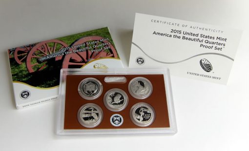 Two earlier products featuring 2015 quarter-dollars have been released by the Mint — the 2015 America the Beautiful Quarter Proof Set for $14.95 and the 2015 America the Beautiful Quarters Silver Proof Set for $31.95. These sets feature all five of this year’s quarters in collector proof quality. Unlike those in rolls and bags, they have sharper detail, frosted designs and mirror-like backgrounds.