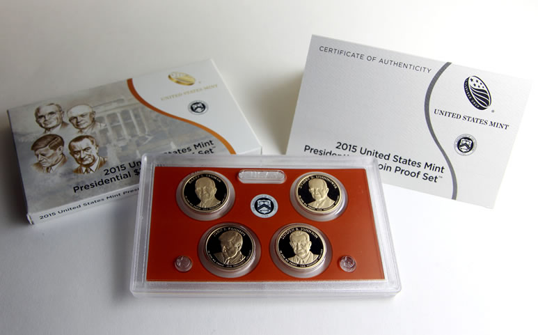 The United States Mint last week started selling its 2015 Presidential $1 Coin Proof Set for $18.95. This short article presents a photo overview of the set of four clad dollars which scored six-day starting sales 110,863.