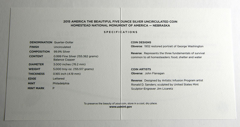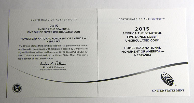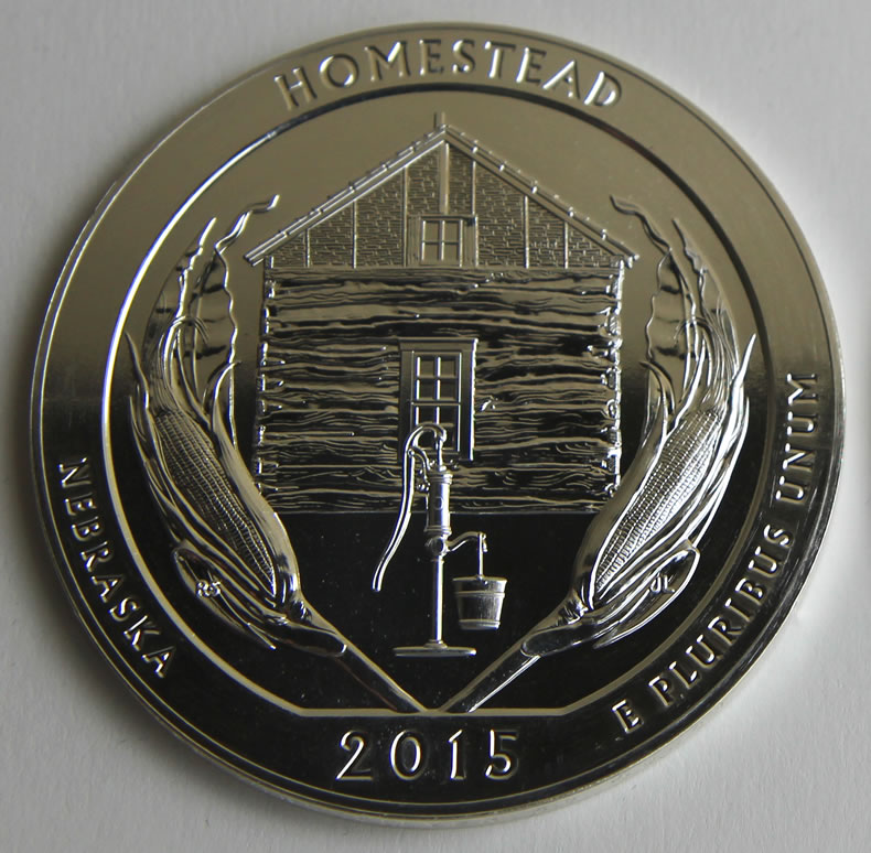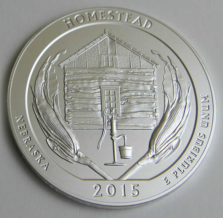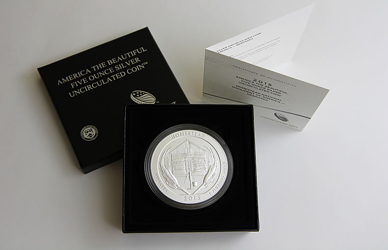 The year’s first 2015 America the Beautiful Five Ounce Silver Coins are out. Sold by the United States Mint, they’re very similar, yet different. Sharing a design symbolic of Homestead National Monument of American in Nebraska, there’s the bullion version intended for investors that launched on Feb. 17 and the uncirculated edition for collectors that went on sale March 5. This article presents a photo overview of the two.
