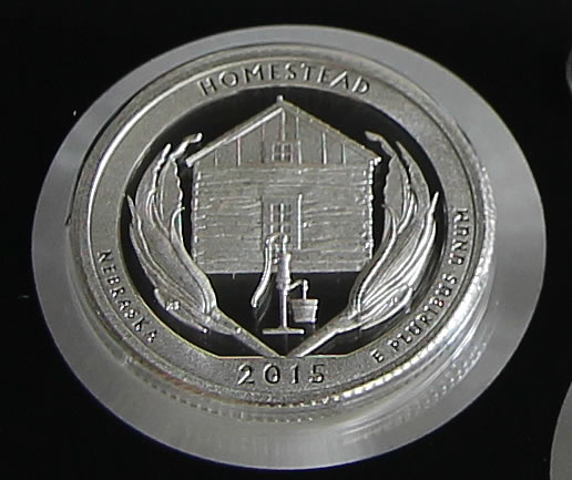 Here are two larger photos of both sides of the collectible Homestead uncirculated silver coin: