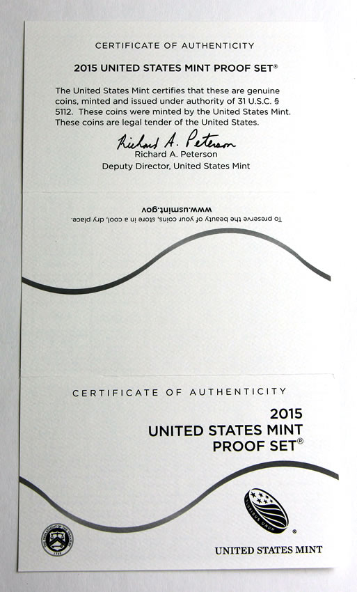All proof sets ship with a certificate of authenticity. The back of certificate also displays specifications of the 14 proof coins to include names of the designers and sculptors.