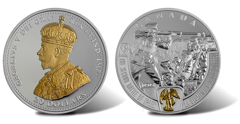The Royal Canadian Mint is accepting orders for the 2015 $20 Second Battle of Ypres Silver Coin, the second of eight issues from the First World War Battlefront series.