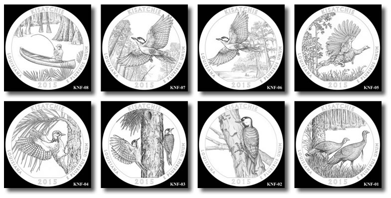 Before the image for the Kisatchie quarter was selected, a total of 8 candidate designs went under review. Seven of them, including the winning design, prominently depicted birds.