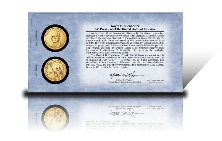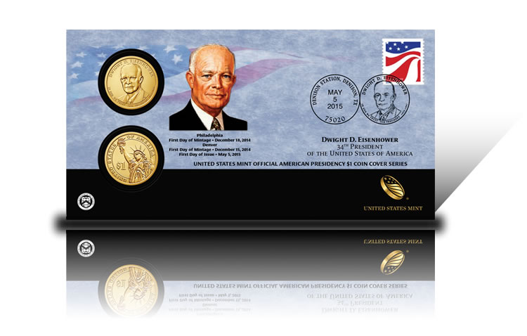 With a limited mintage of just 15,000 and priced at $19.95, this latest collectible product is the 34th issue in the U.S. Mint’s American Presidency $1 Coin Cover Series, and it honors Dwight David "Ike" Eisenhower, the five-star general and 34th President of the United States.