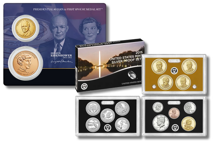 On Tuesday, May 12, the U.S. Mint will issue the Eisenhower Presidential $1 Coin & First Spouse Medal Set for $9.95. This set includes an uncirculated Eisenhower $1 and a bronze medal in the likeness of Mamie Eisenhower First Spouse Gold Coins.