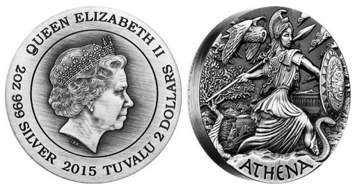 Expected to quickly sell-out, the Perth Mint of Australia just released the 2015 Athena 2 oz Silver High Relief Coin. Found on the reverse is the likeness of Athena, Greek mythology’s goddess of Wisdom.