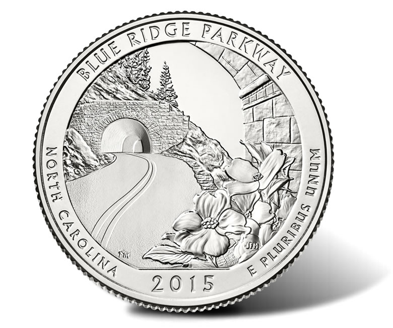 Wednesday’s ceremony will offer attendees an early opportunity to acquire Blue Ridge Parkway quarters, the third of five 25-cent designs for 2015 and the 28th release in the series of America the Beautiful Quarters. They actually begin their journey into general circulation in a few days, on June 8, but it’ll likely take anywhere from months to years before they commonly show up in pocket change. However on Monday, June 29, Blue Ridge Parkway quarters will also be available from the U.S. Mint in several bag and roll products.