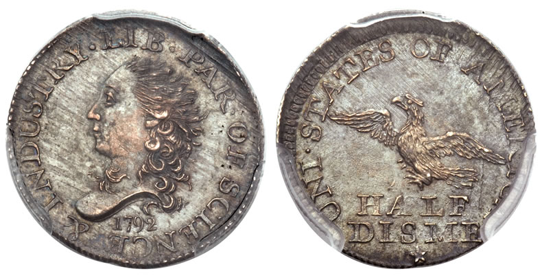 The U.S. coins auction featured a number of outstanding coins in addition to the New Orleans collection. Notable for being the first federal issue struck after the passage of the Mint Act of 1792, a 1792 Half Disme MS64 PCGS realized $329,000.