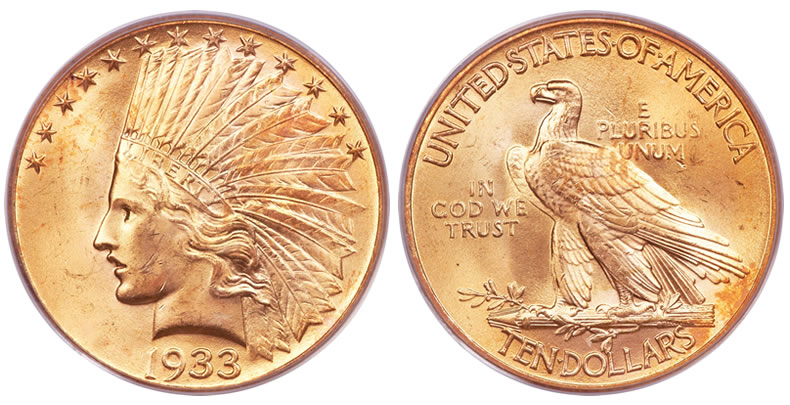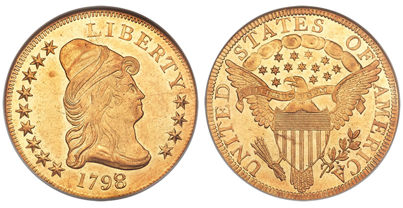 Two $10 gold rarities completed the collection sale. A 1933 $10 Eagle MS65 PCGS realized $587,500 and a 1798/7 $10 Eagle MS62 NGC realized $199,975.
