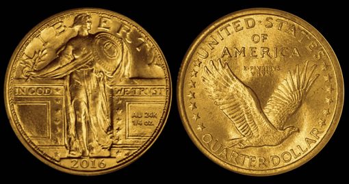 - AU 24K 1/4 OZ. on the 2016 Standing Liberty quarter, and